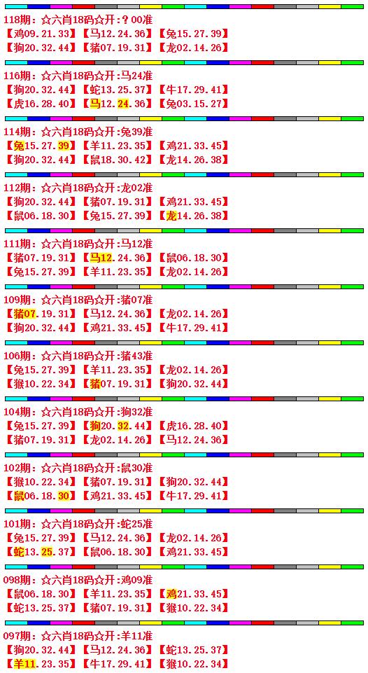 | 118期:[兔15.猴10.龙14.牛05.马24.羊11]开(?00) | |
